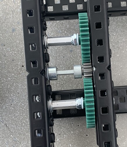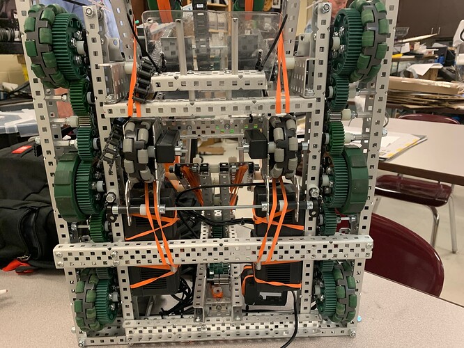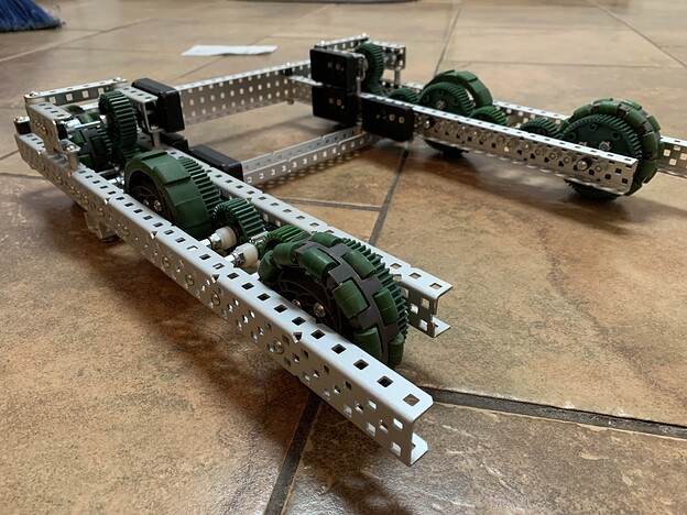 Just by quickly looking at it, you should add another crossbar for support, if you only have one the c channels can flex away from each other and cause friction. Because its only a picture of the drive base I hope that was included in the rest of the robot, but if not that’s something to add.