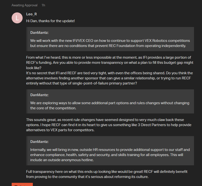 I have found new enjoyment creating posts fairly useless posts on the vf now that each post requires moderation. Can’t wait till night where I can possibly amass a bunch of perfectly fine, but unnecessary posts for them to approve.