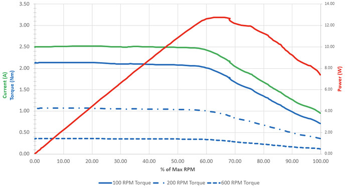 This shows that the V5 motors will output the most torque and power around 50-60% rpm.