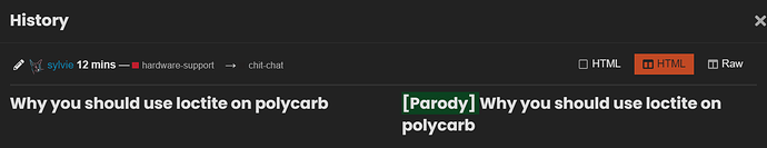 I feel like labeling the Loctite post as a parody is ok because that post isn’t abudantly clear that it is a parody without already knowing about the effects of Loctite on poly. The post is persented in a well wirten and professional way for a commuinty fourm that is attempting to foster an environment around providing useful and relevant robotics knowledge and discussions. BUT at no point is there anything so absurd that it couldn’t possiblby be true for say a 7th grader, who is part of the reasonable audience for this fourm.