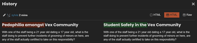 And that goes for both of these posts mentioned. Now I understand that the mod team is new to this system, but it would be nice to metion that changes where made and the reasons why. The scary part is that changes are being made without anyone really knowing why or a reason given. Even on the vex fourms the community guidles where mentioned when an edit or modration happned. So in other words transparency is key for the mod team to create a safe environment that we know we can trust, and isn’t some mod upset at a topic that is genuinely being discussed.